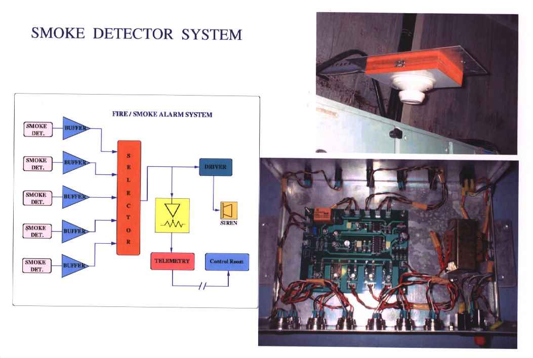# The Smoke/Fire Alarm system monitors any smoke in the Antenna shell and transmits warning signal to the Control Room if smoke is detected.